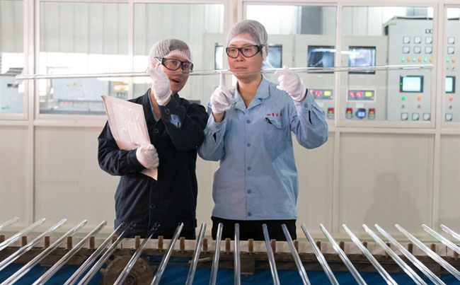 我们使用的是冷頂式全电熔维洛法生产5.0中性硼硅玻璃管,获得了国家发明专利(专利号:ZL200710187477.5,专利证书号:745115),产品被评为2014年国家级重点新产品,并成为国家“十二五规划”战略性新兴产业的重点扶持项目。